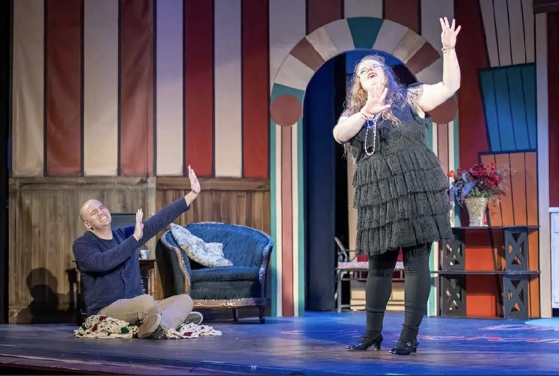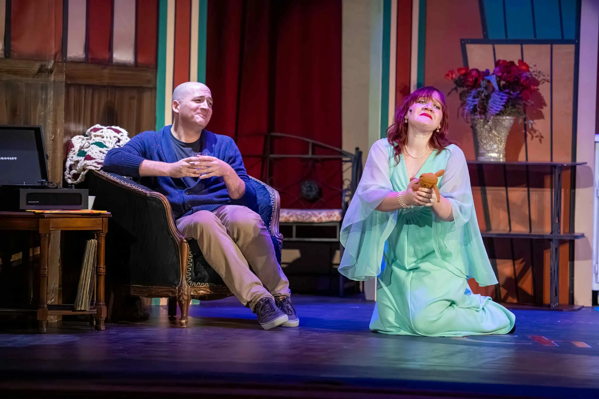 The Man, lip-synching along with the Drowsy Chaperone (Rose Cunningham).