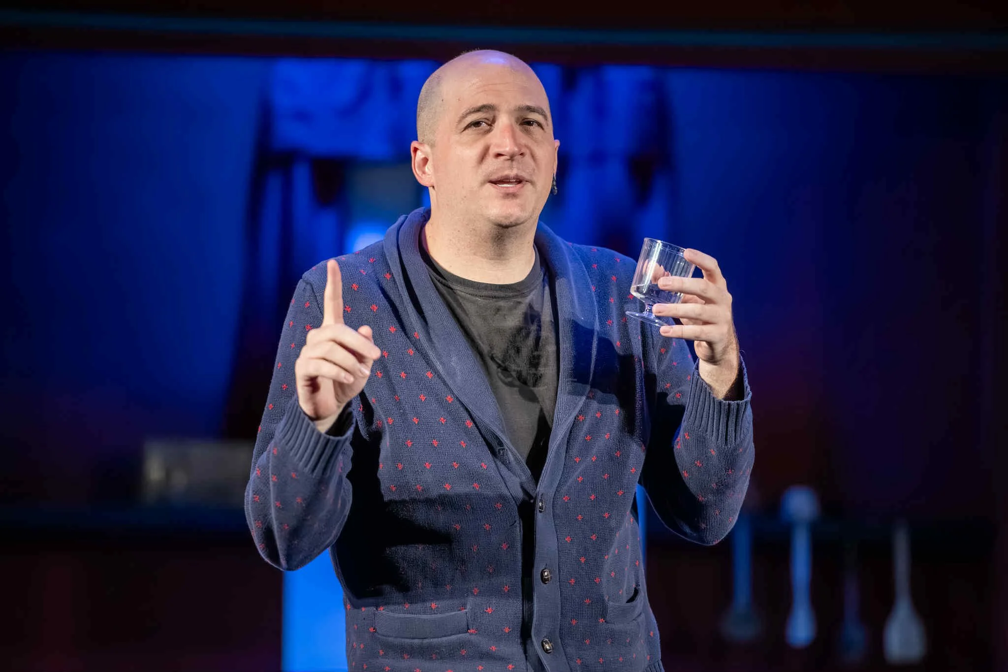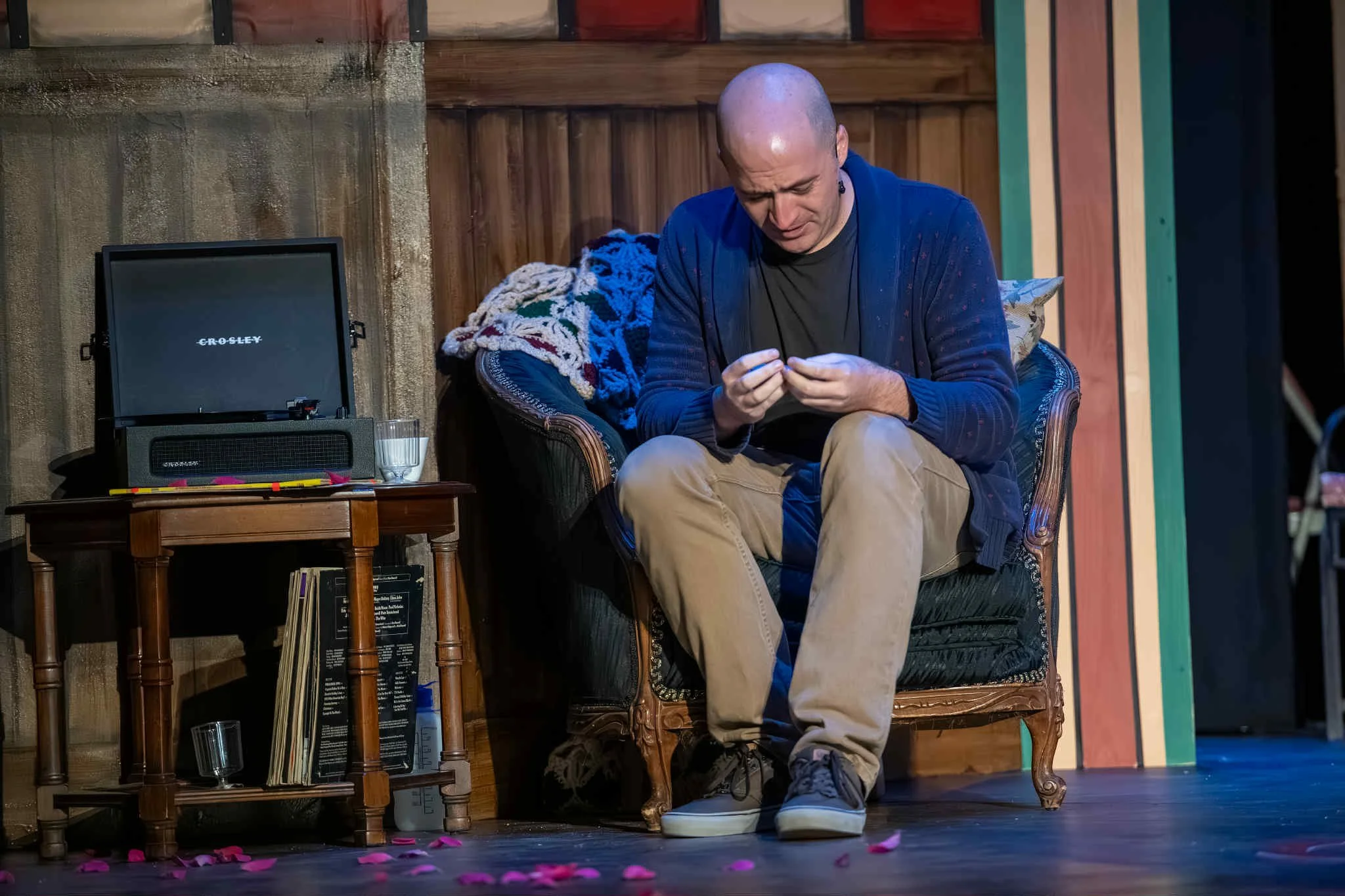 I generally am very self-deprecating but let me say I didn’t have to do much “acting” for the role. The lines require a delivery that suited my usual comedic style. The Man cuts in to the show with fun facts of musical theater history, occasionally snarks about something he finds stupid in a scene, one time he interrupts a song to say he’s going to pour a brandy. It’s a juicy and hilarious role, especially if you want to be in a musical but don’t want to sing or dance. But there’s a sadness to Man in Chair too and honestly that’s what I loved about him, and that’s what I related to the most.